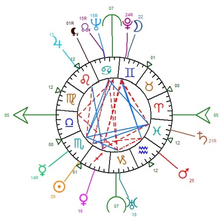 Cependant dans ce vis-à-vis fixe Taureau-Scorpion, on peut deviner que le Léonien Picasso va régner en maître bâtisseur ou destructeur par un solide amas plutonisé de 4 planètes au Taureau dont un maître du Soleil.