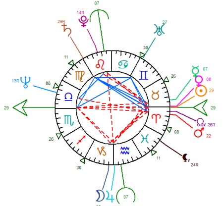 (Amas Taureau en VII et Bélier en VI sextil à Uranus/Gémeaux en VIII et en trigone à Saturne)