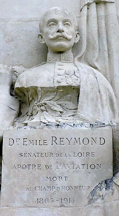 Érigé au sortir de la guerre de 1914 par souscription nationale et sorti des mains de l’illustre sculpteur Bartholomé, ce monument témoigne de part et d’autre par ses bas-reliefs des activités qui ont porté la vie ardente d’Émile Reymond : la Médecine et l’Aviation.